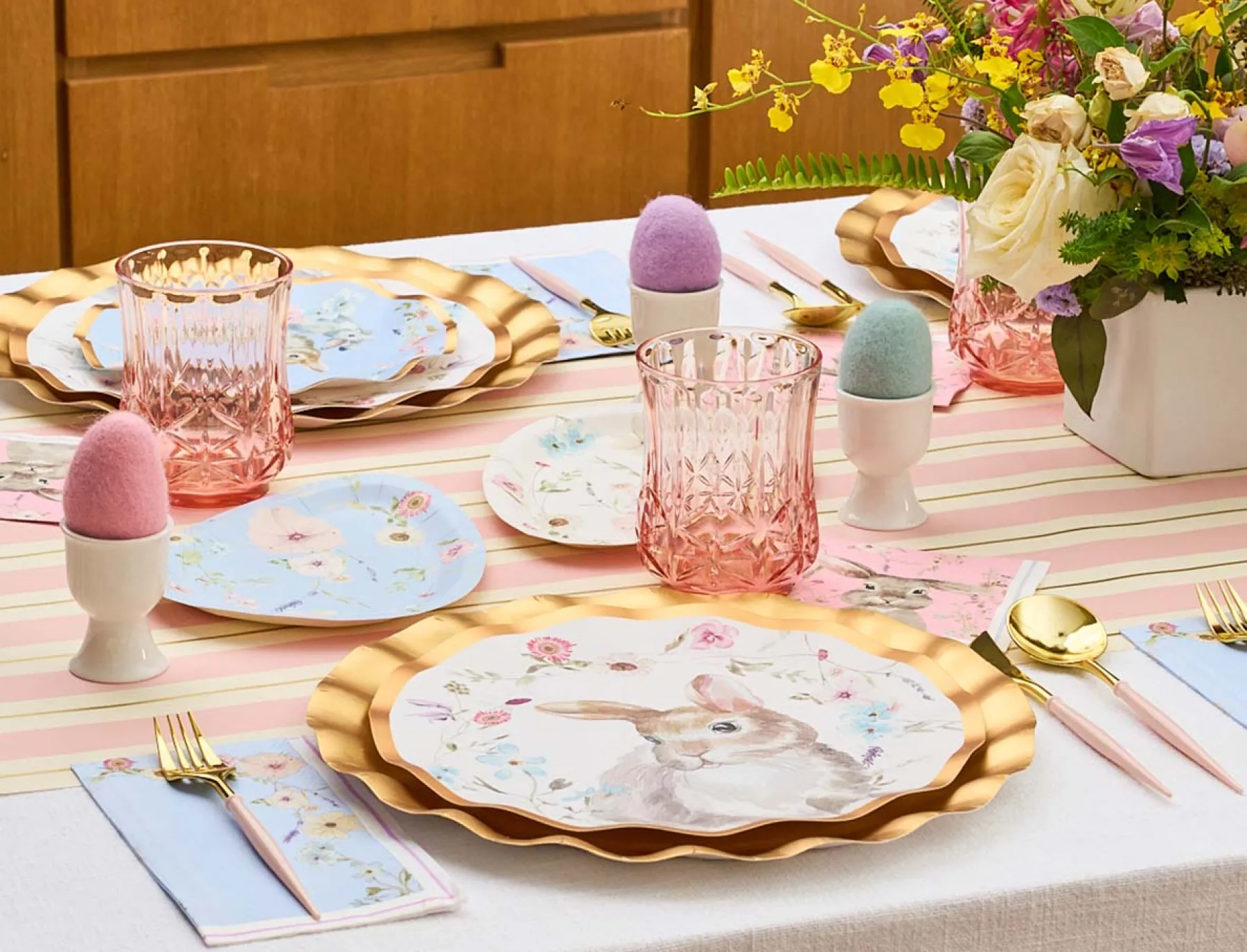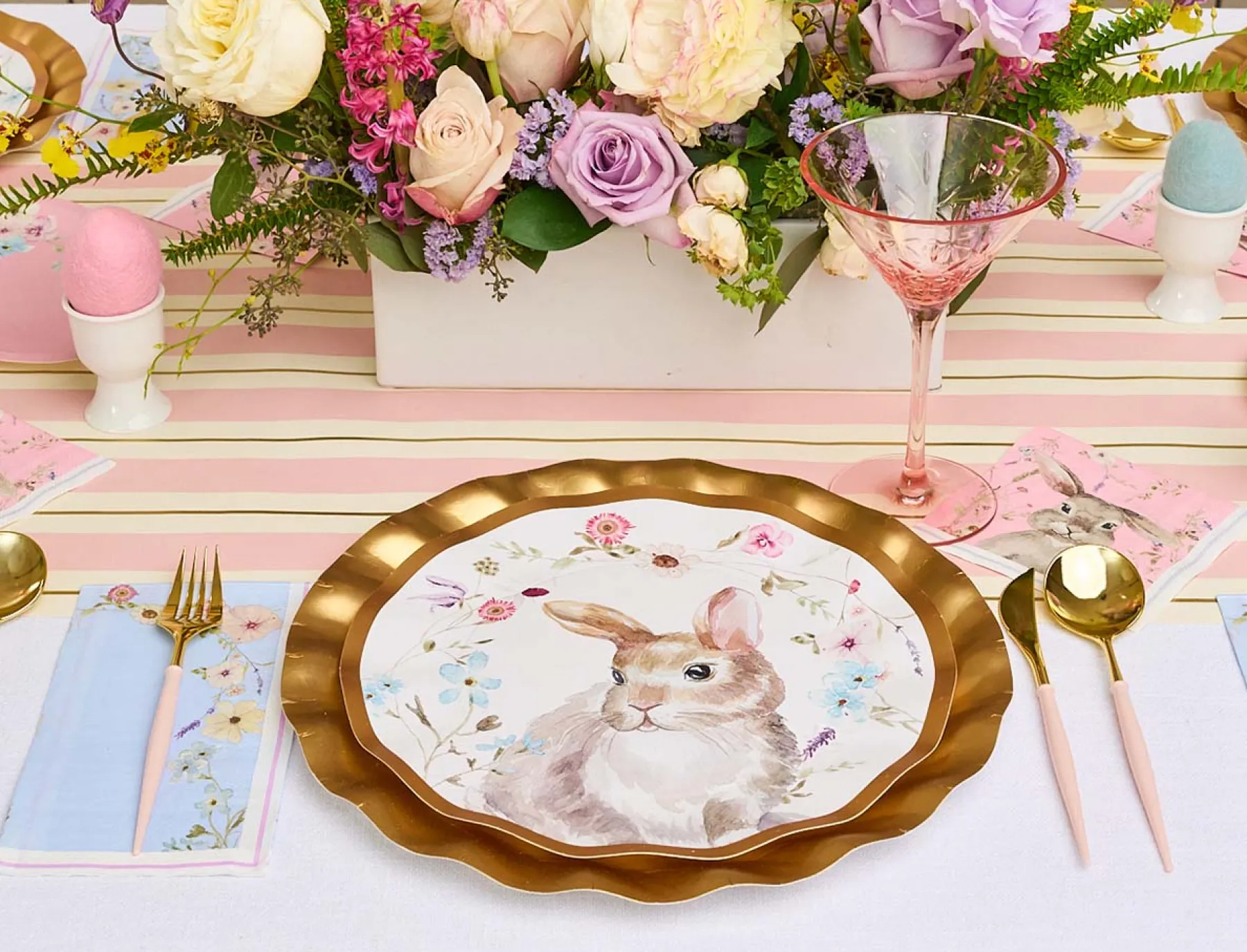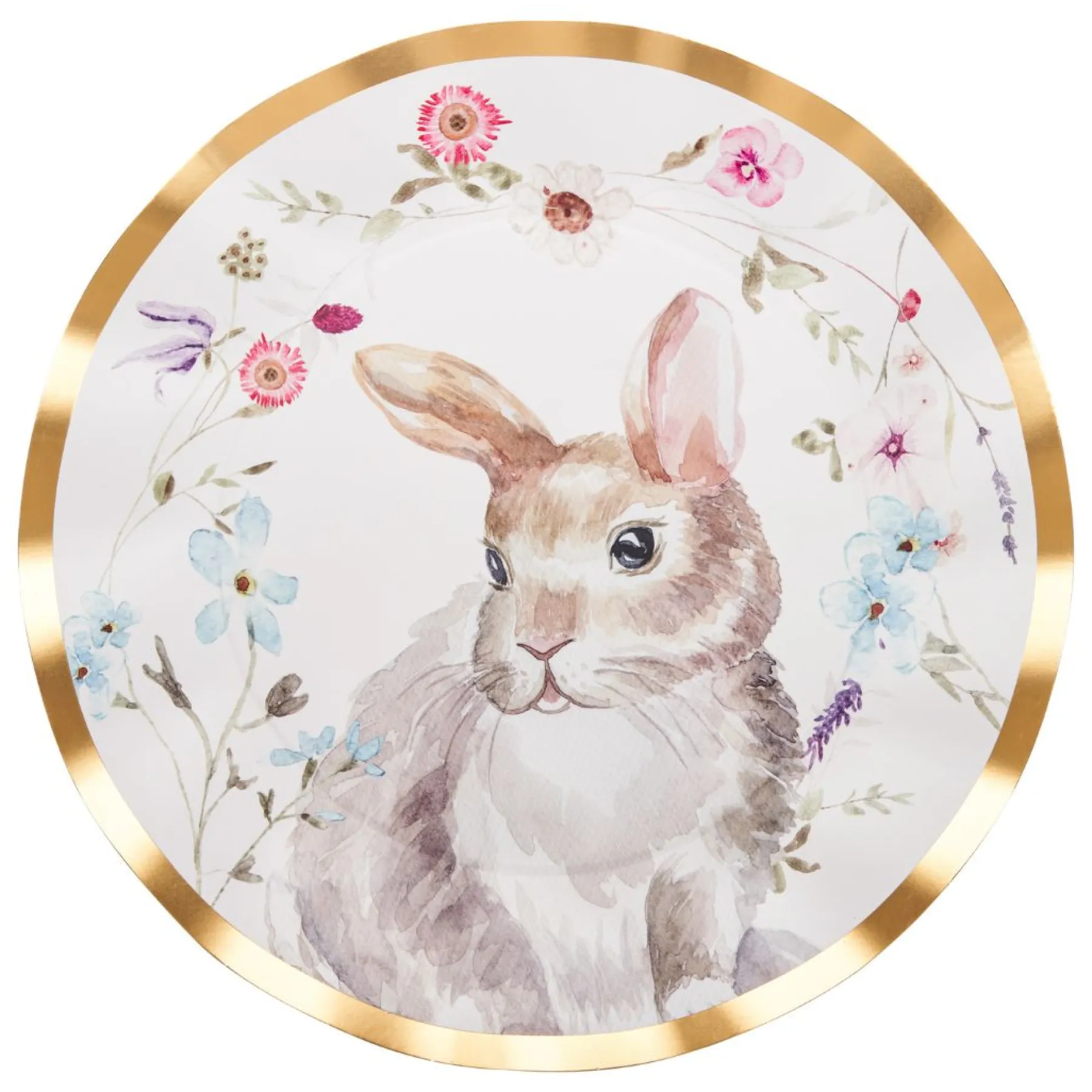 These ruffled edge plates feature charming bunnies with easter flower pattern surrounded by a gold foil trim!