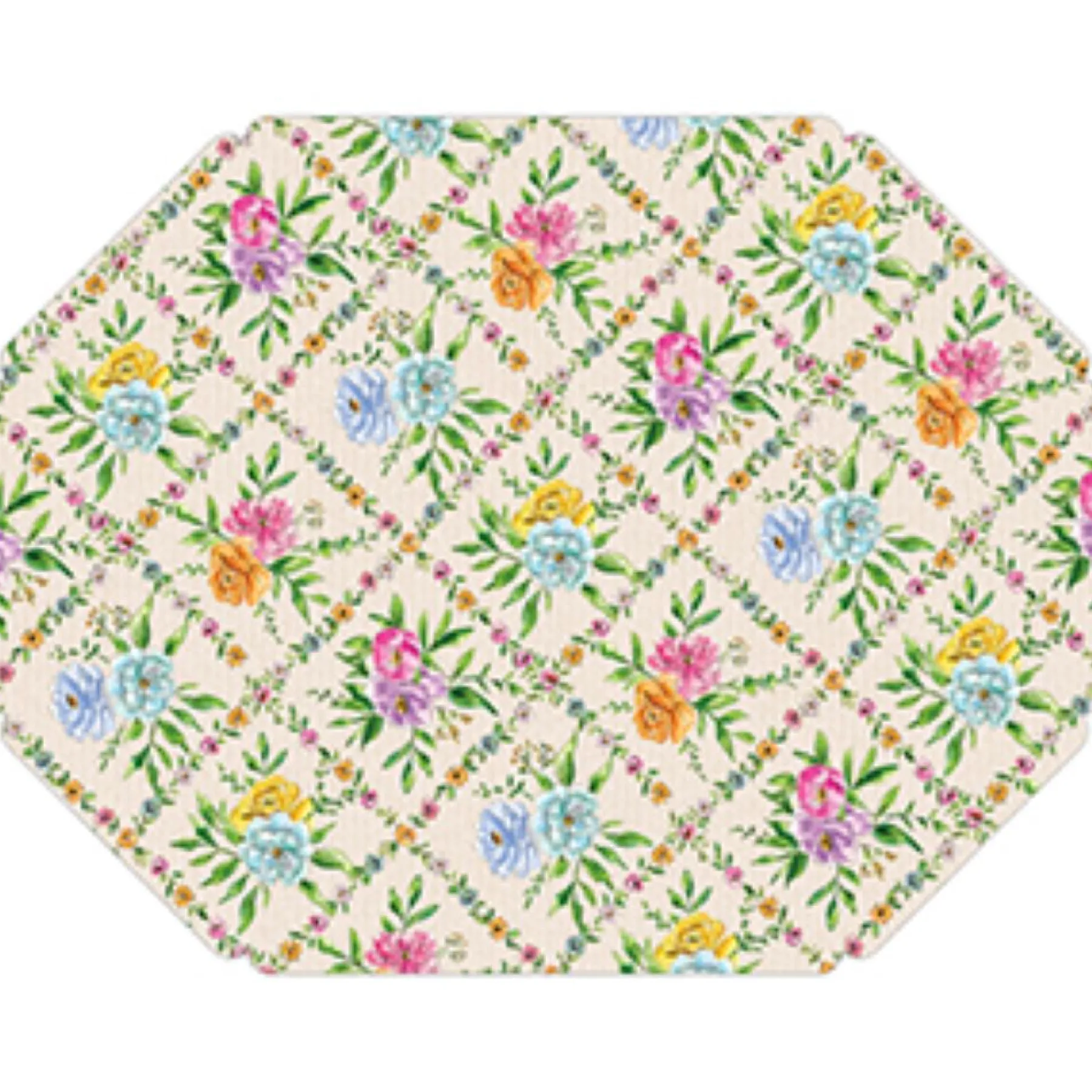 Elevate your table setting with our stylish floral trellis placemats! Crafted from premium card stock, these placemats add both charm and convenience to your tablescape. The trendy geometric shape brings a modern touch, while the floral trellis pattern sets the perfect scene for any gathering.