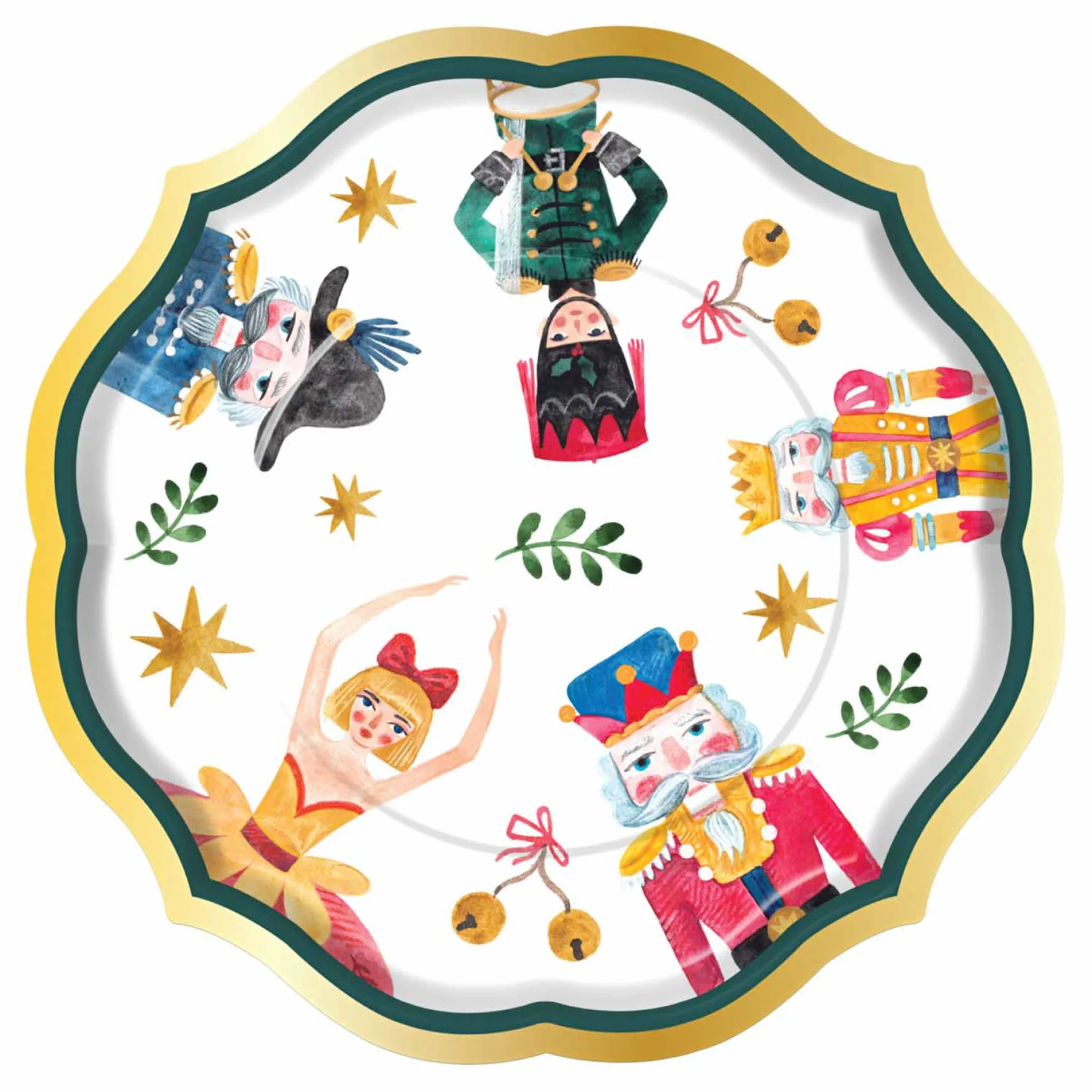 Embrace the holiday season with our Whimsical Nutcracker Collection, featuring charming scalloped edge plates enhanced by elegant gold foil accents. This ornate design featuring ballerinas and nutcrackers merges modern style with timeless elegance, perfect for your Christmas celebrations. Adorned with then array of colors of the season, these whimsical salad plates will make your holiday meal truly picture-perfect, leaving your guests amazed that they’re disposable!