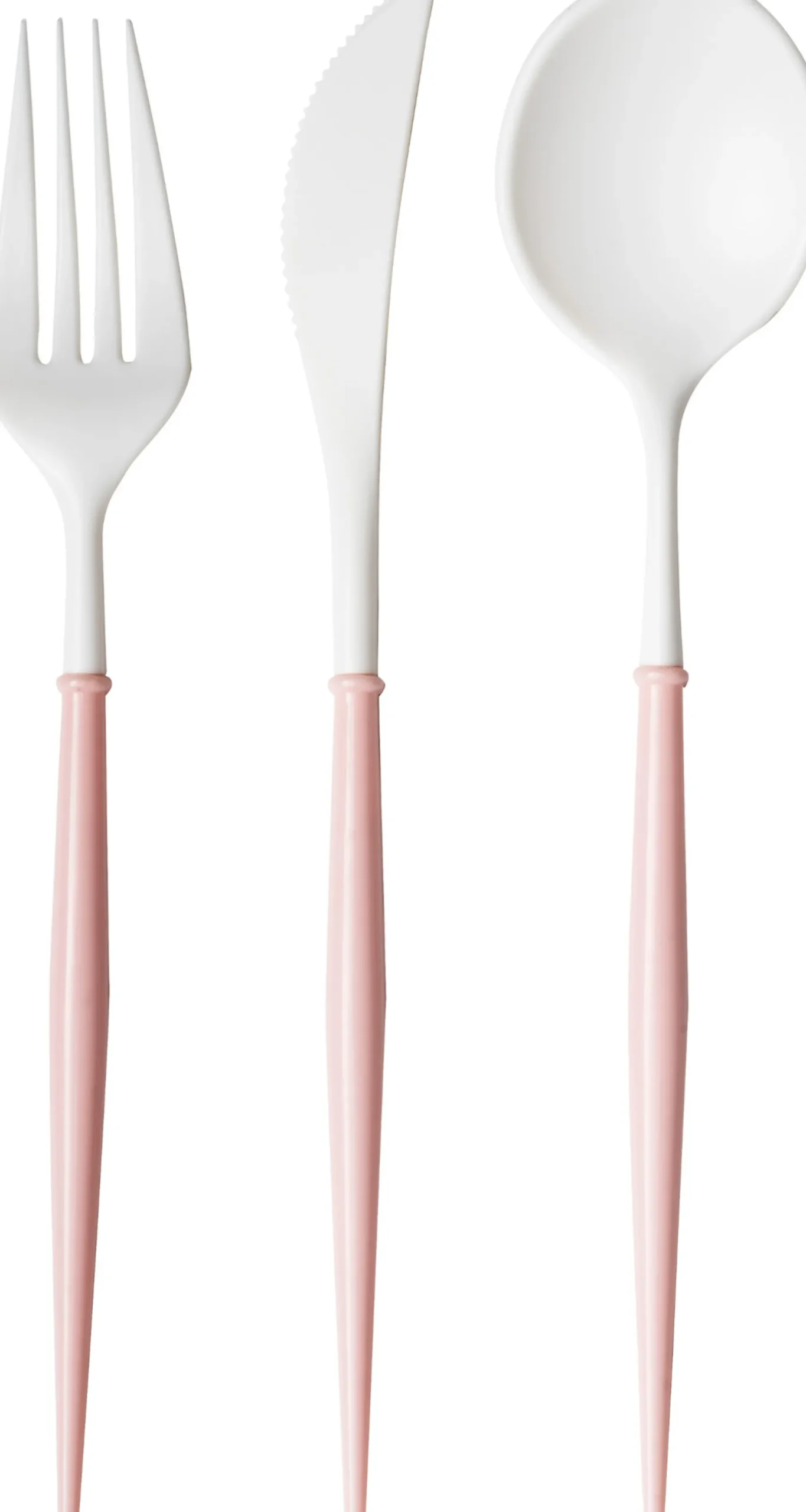 The Bella line of disposable plastic cutlery by Sophistiplate is a gorgeous and sleek modern design that elevates any table, place setting, or event. Perfect for Birthday Parties, Date Night, Family Gatherings, Holidays, Parties, BBQ’s, Outdoor Entertaining, Kids Parties, and more.