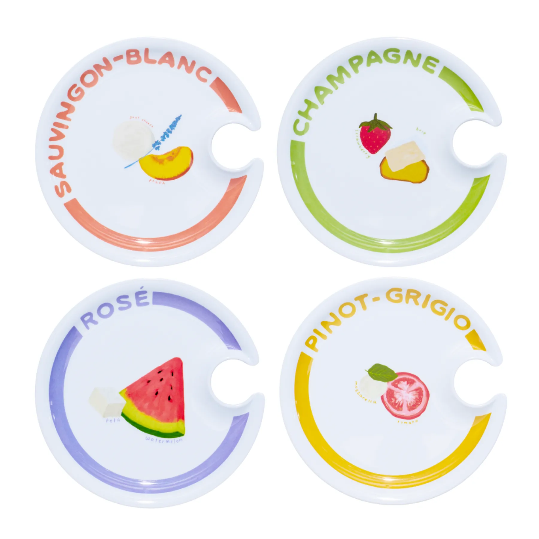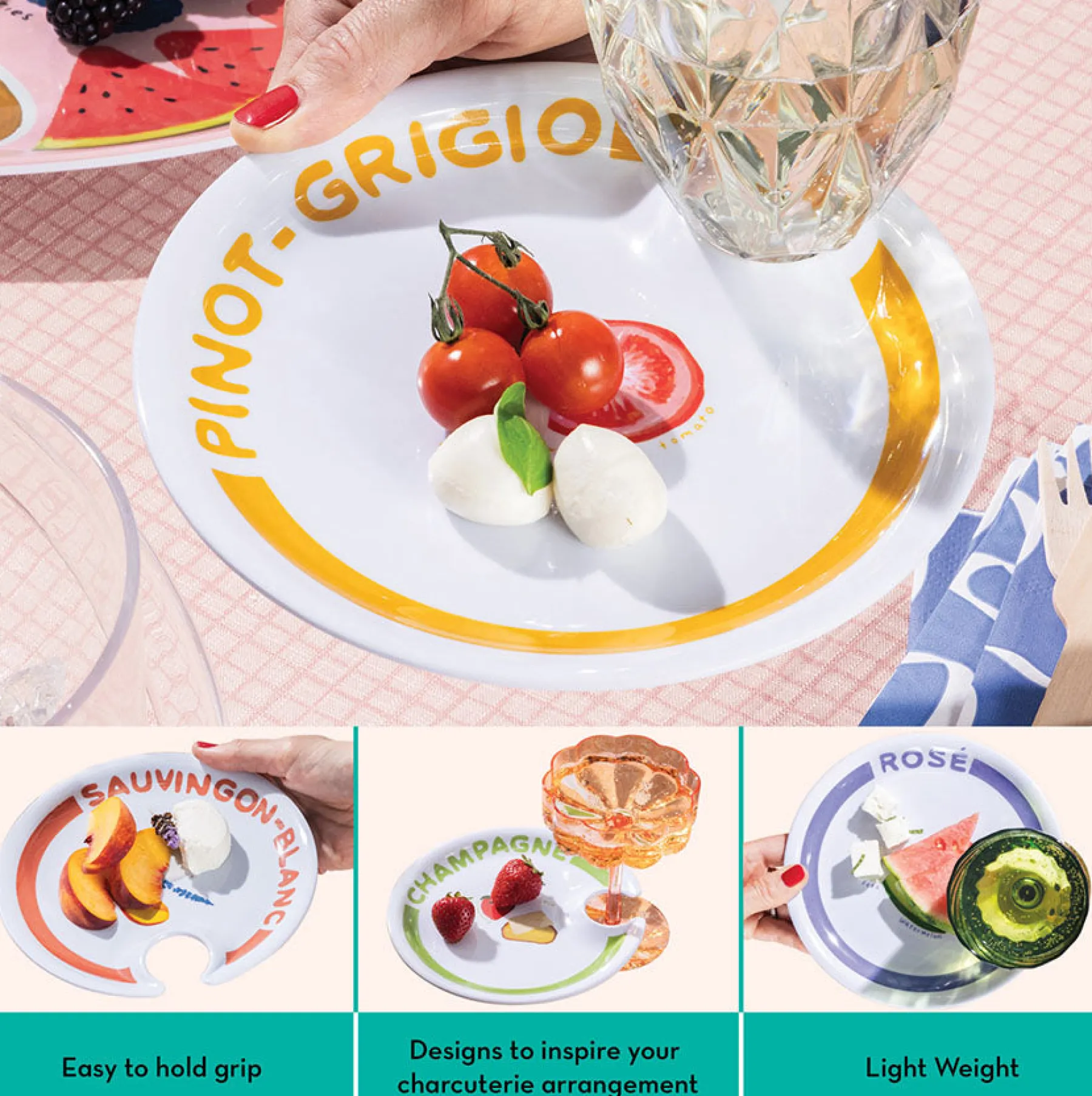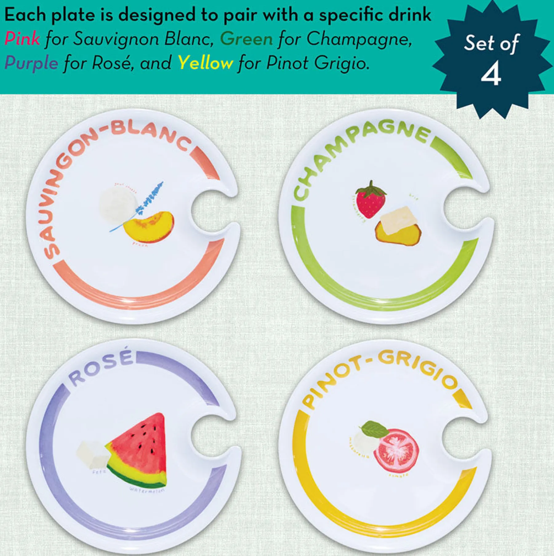 - Four Wine-Inspired Colors: Each 7-inch plate is thoughtfully designed to pair with a specific drink—pink for Sauvignon Blanc, green for Champagne, purple for Rosé, and yellow for Pinot Grigio.