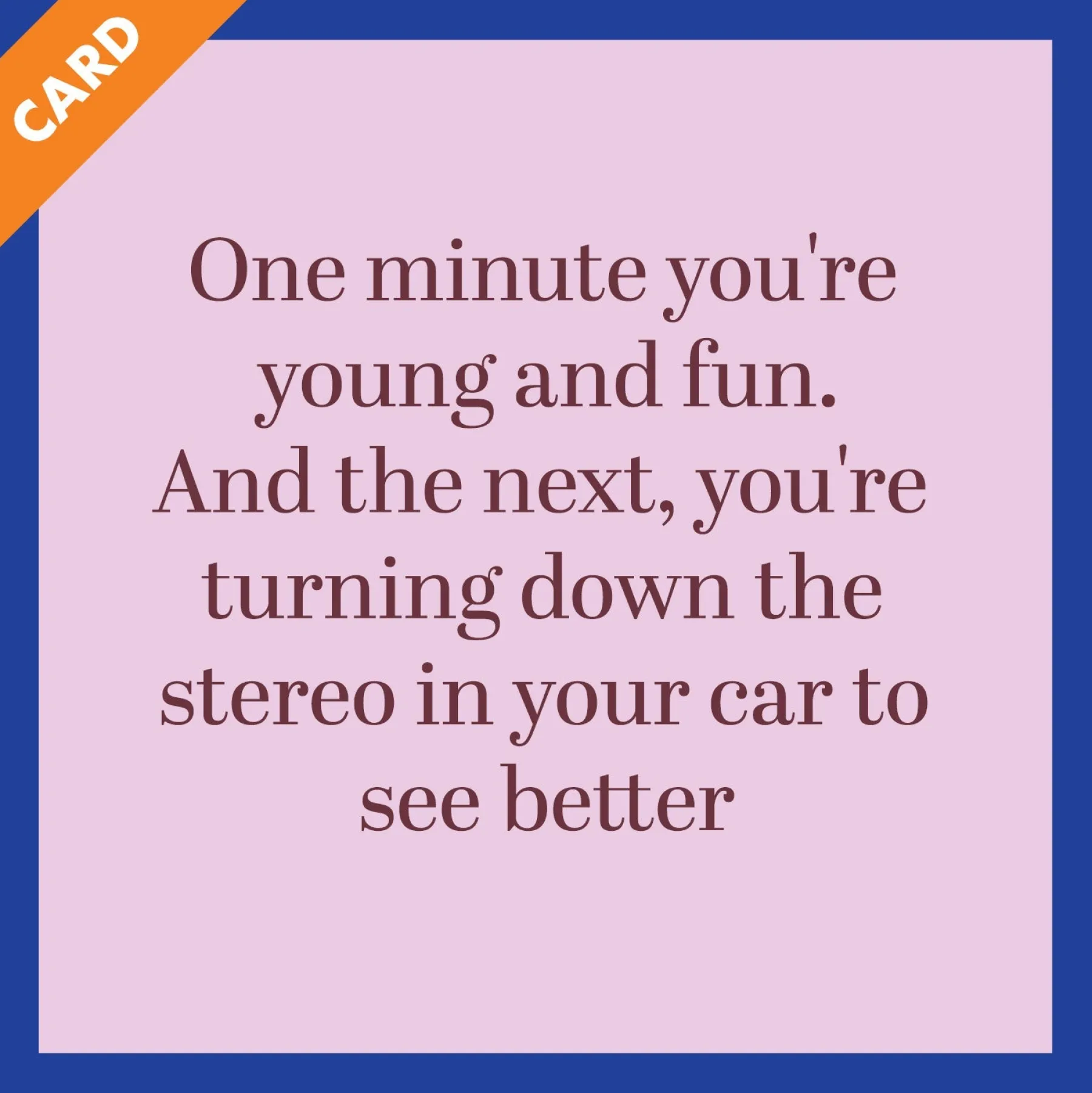 “One minute you’re young and fun. And the next, you’re turning down the stereo in your car to see better”